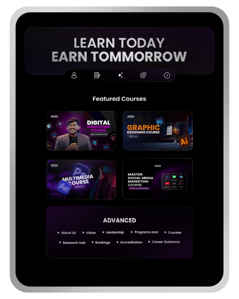 Adsin The Learning Hub is one of Kerala’s fastest-growing digital learning platforms and the best digital marketing institute in Calicut, dedicated to helping students and professionals build real, industry-ready skills. At Adsin, we believe that education should be practical, updated, and aligned with the latest market trends—especially in high-growth fields like digital marketing, graphic design, multimedia, web development, and AI-powered skills.